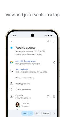 A matsayin wani ɓangare na Google Workspace, Google Calendar yana ƙarfafa haɗin gwiwa da samarwa tare da sauran kayan aikin Google. Ka haɗa kiran bidiyo na Google Meet kai tsaye zuwa taron Calendar don taron aiki mai haɗin gwiwa, ko kuma ka yi amfani da shafukan ajiyayyu na ƙwararru don abokan ciniki da masu amfani. Samar da taro tare da abokan aiki yana da sauƙi ta hanyar duba lokacin samuwarsu ko haɗa kalandocinsu a kallo ɗaya. Haka kuma, za ka iya haɗa takardun taro, kayan karatu, da sauran bayanai kai tsaye ga taron Calendar, don kowa ya kasance shirye. A ƙarshe, Google Calendar yana samun goyon bayan sirri da tsaron bayanai na matakin kamfani na Google, yana tabbatar maka da aminci da tsaro yayin amfani.