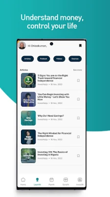 Baya ga damammakin zuba jari, InvestNaija tana ba da fasalin LearnIN, wanda ke cike da albarkatun ilimin kudi. A nan, za ka samu darussa, kasidu, bidiyoyi, da kuma shirye-shiryen rediyo (podcasts) kan harkokin kudi na sirri. Wannan sashe an gina shi ne don fadada fahimtarka game da kudi da kuma taimaka maka wajen yanke shawara mai inganci. Ko kana fara tafiyarka ta kudi ne ko kuma kana neman kara zurfafa iliminka, LearnIN tana da abin da za ta bayar ga kowa da kowa.