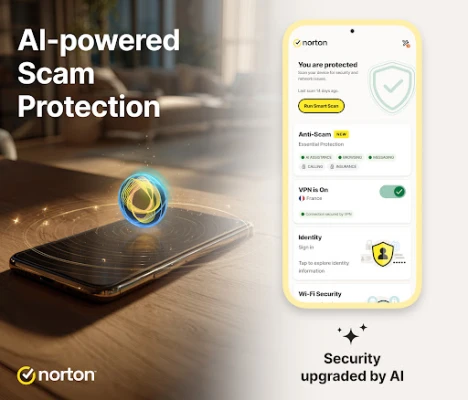 Norton 360 yana ba da tsaro mai ƙarfi ga wayarka, tare da riga-kafi, kariya daga malware mai AI, mai bincike da share ƙwayoyin cuta, da VPN don sirri a intanet. Kariyar zamba da aka gina ciki tana taimaka maka ka kasance lafiya yayin bincike, siyayya, ko aika saƙo.