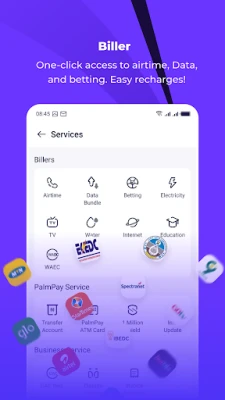 Haɗa kai da PalmPay Business don biyan kuɗi cikin sauƙi da tura kuɗi. Sami kashi 5% akan data, ji daɗin ajiya mai sassauci da riba har 20% a kowace shekara, cire kuɗi kyauta. Rajista mai sauƙi da lambar waya, da kuma sabis na abokan ciniki awa 24/7. PalmPay yana da lasisi kuma miliyoyin 'yan Najeriya sun amince da shi.