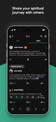 A Zaia, ana gayyatar ka don ka fito da kyaututtukan Allah da ke cikin ruhinka. Yi amfani da damar ƙirƙirar abubuwan da ke motsa rai da nishadantarwa ta hanyar raba hotuna, bidiyoyi, da rubuce-rubuce masu zurfi waɗanda za su iya ƙarfafa wasu a cikin tafiyarsu ta rayuwa. Bugu da ƙari, wannan manhajar tana ba ka damar raba tafiyarka ta ruhaniya ga al'ummar Kiristoci a yankinka ko ma a duniya baki ɗaya. Kana iya karanta Littafi Mai Tsarki kai tsaye a cikin manhajar, tare da ikon raba ayoyi masu ban sha'awa da ke taɓa zuciyarka ga waɗanda suke tare da kai a wannan tafiya ta imani.